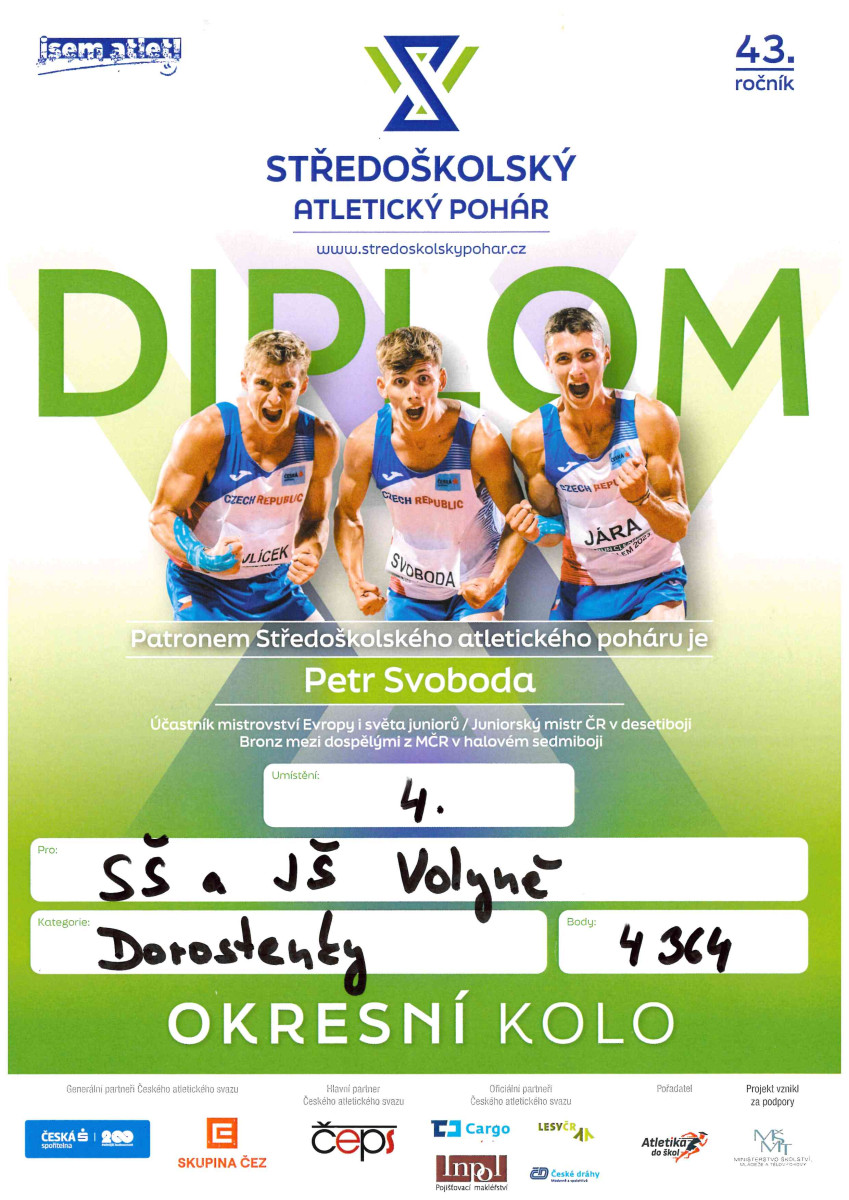 Družstvo dívek naší školy se dne 12.9.2025 zúčastnilo Středoškolského atletického poháru a v silné konkurenci okresního kola vybojovalo krásné 4. místo. Studentky předvedly skvělé výkony v jednotlivých disciplínách a potvrdily, že vytrvalost, týmová spolupráce a sportovní nasazení patří mezi jejich silné stránky. Gratulujeme a děkujeme za vzornou reprezentaci školy!